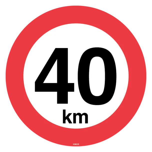 Vil du sikre en tryggere trafik i dit område? Etabler et mere sikkert miljø for fodgængere, cyklister og bilister med vores 40 km hastighedsbegrænsningsskilt. Dette ikoniske skilt er din partner i at nedbringe hastigheden og øge trafiksikkerheden på gader og veje, hvor en nedsat hastighed er essentiel.