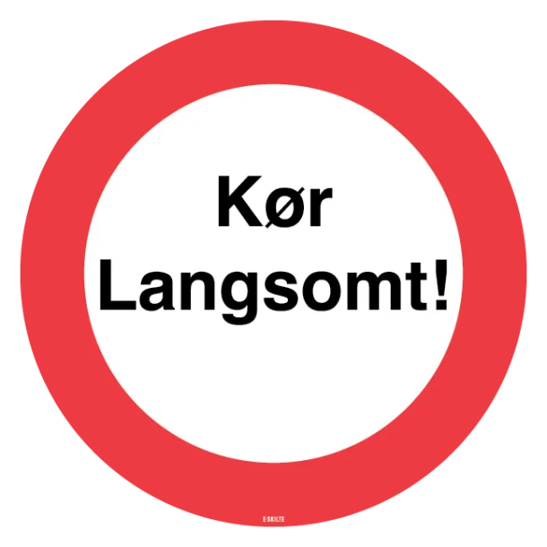 Med en øjeblikkeligt genkendelig udformning sikrer vores “Kør langsomt skilt” at budskabet når frem, selv på afstand. Det simple men effektive design fanger bilistens øje og sikrer, at hastighedsnedbringende foranstaltninger overholdes.