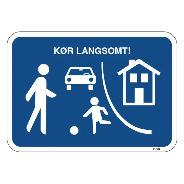 Når sikkerheden for fodgængere, børn og dyr er i højsædet, er et “Kør langsomt” skilt den perfekte løsning. Dette vigtige skilt er designet til at sende et klart budskab til bilister om at mindske hastigheden og opføre sig ansvarligt i trafikken. Med dette skilt er du med til at skabe en tryggere atmosfære i dit lokalområde, ved skoler, boligområder eller hvor der ellers er behov for en påmindelse om at færdes med omtanke.