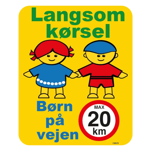 Forhøj sikkerheden i dit nabolag, nær skoler og legepladser med et klart og tydeligt budskab: ‘Langsom kørsel – børn på vejen – max 20 km’ skiltet. Dette skilt er designet til at skabe opmærksomhed og beskytte vores mest dyrebare skatte – børnene. Ved at opfordre til reduceret hastighed øges trygheden i dine omgivelser markant.