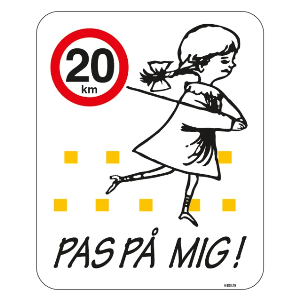 Ønsker du at promovere sikkerhed og gøre en real forskel i dit lokalmiljø? Vælg vores Pas på mig skilt – 20 km og vær med til at sikre, at de små og sårbare bliver set og beskyttet. Et lille tegn med stor betydning – tilgængelig her i vores webshop.
