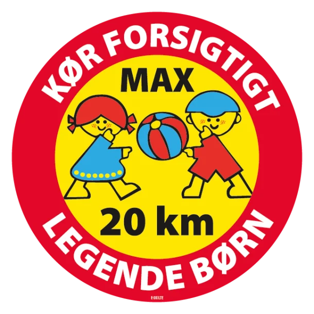 Kør forsigtigt max 20 km legende børn skilt