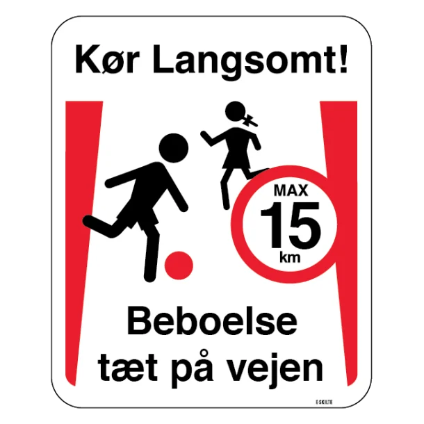 Et “Kør langsomt – legende børn” skilt er et proaktivt skridt i at undgå tragiske ulykker forårsaget af for høj fart. Ved at placere dette skilt tydeligt, hjælper du med at skabe en sikkerhedsbevidst adfærd og ansvarlighed blandt førere i dit område.