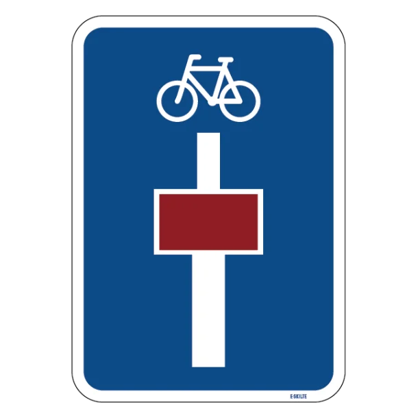 Designet til at fange øjet, sikrer dette skilt, at budskabet om, at vejen ophører for køretøjer, men fortsætter for cyklister, kommunikeres klart og tydeligt. Skiltet fungerer som en guide, der hjælper med at navigere trafikanter sikkert og bekymringsfrit. Med et klart og forståeligt budskab, understøtter dette skilt effektivt opbygningen af harmoniske færdselsarealer.