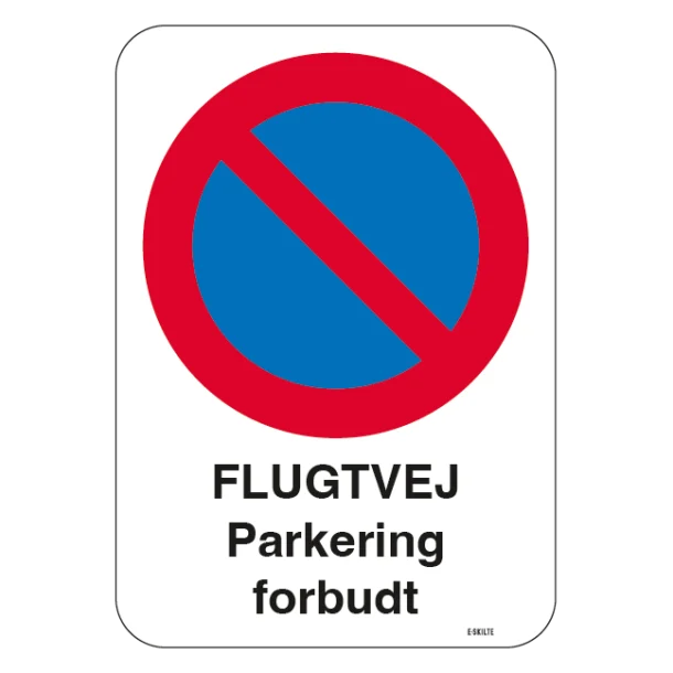 Inspireret af det officielle Forbudstavle C 62 – Parkering Forbudt, sikrer dette skilt ingen er i tvivl. Det er intuitivt for alle bilister, hvilket øger chancen for, at skiltets budskab bliver respekteret. Placeret strategisk, vil “FLUGTVEJ Parkering forbudt” med sit tydelige, sort på hvid kontrast, være umuligt at ignorere.