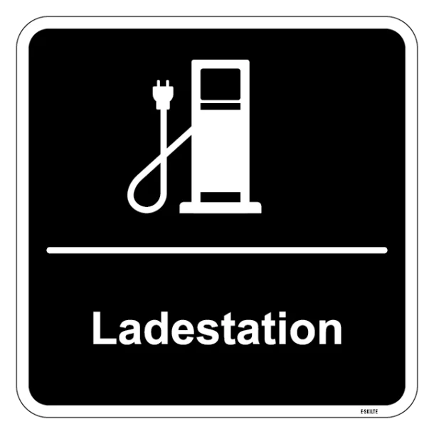 Ladestation sort kvadratisk skilt – Tydelig signalering for elbilister