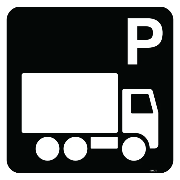 • Letforståelig kommunikation: Piktogrammet viser på en enkelt og direkte måde, at parkeringsområdet er forbeholdt lastbiler, hvilket mindsker forvirring og optimerer trafikflowet.