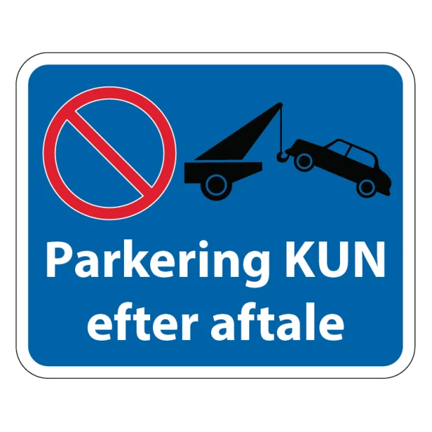 Skiltets klare blå farve og tydelige bogstaver sørger for, at budskabet bliver set og forstået straks. Dette sikrer, at ingen vil overse det vigtige budskab om at parkering kun er tilladt efter forudgående aftale.