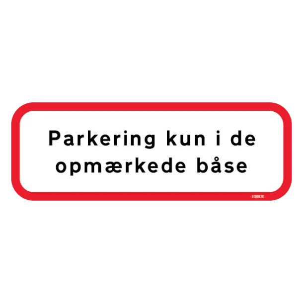 Skiltet “Parkering kun i de opmærkede båse” er ikke kun praktisk, men også en nødvendighed for en velordnet parkering. Med tydelig tekst og universelle symboler sørger skiltet for, at ingen er i tvivl om parkeringsreglerne. Den klare instruktion leder bilister direkte til de opmærkede områder, og minimerer risikoen for forkert parkering og blokering af kørebaner.
