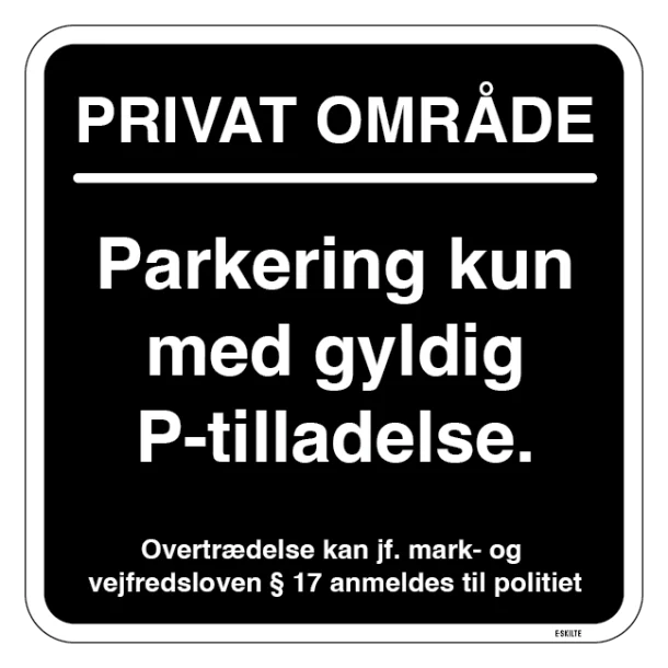 Gør det enkelt for dig selv og andre at forstå og følge parkeringsreglerne med vores “Parkering kun med gyldig P tilladelse” skilt. Bestil i dag og opnå harmoni på din parkeringsplads!