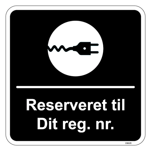 Reserveret til dit reg. nr. sort kvadratisk oplader skilt