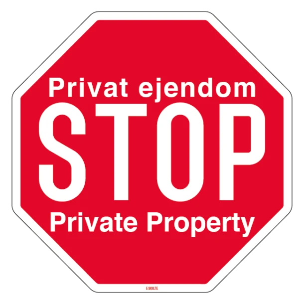 At anvende et Privat ejendom STOP Private Property skilt er en effektiv måde at kommunikere din ejendomsret på. Skiltet er nemt genkendeligt og forstås på tværs af sprogbarrierer takket være den internationalt anerkendte ‘STOP’-symbolik, der kombineret med teksten skaber en universel opfordring til at respektere dit private område.