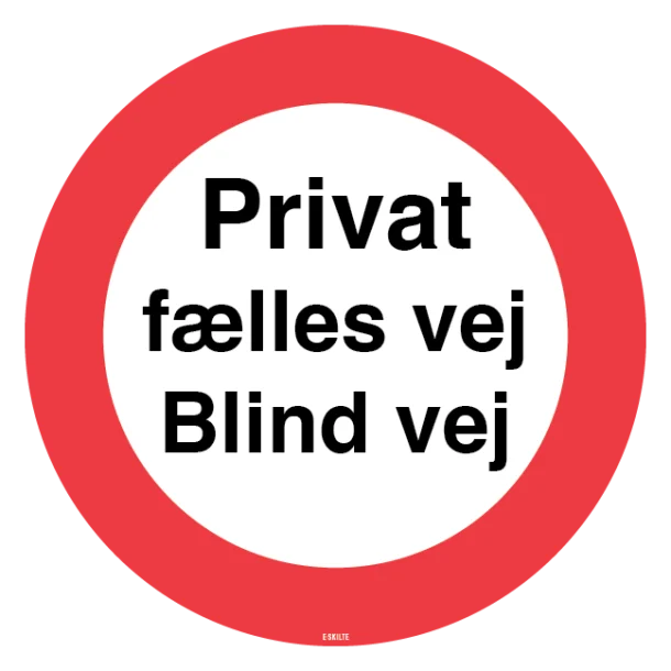 Opsætning af et Privat fælles vej Blind vej skilt er en simpel handling, der kan have stor betydning for små fællesskaber og private veje. Det er en investering i tryghed, overskuelighed og skaber en respekt omkring privat ejendom og fællesskabets områder. Vær proaktiv og gør dine veje sikre og velmarkerede i dag med vores holdbare og tydelige skiltning. For en roligere, sikrere og bedre organiseret vej, bestil dit skilt fra vores webshop nu.