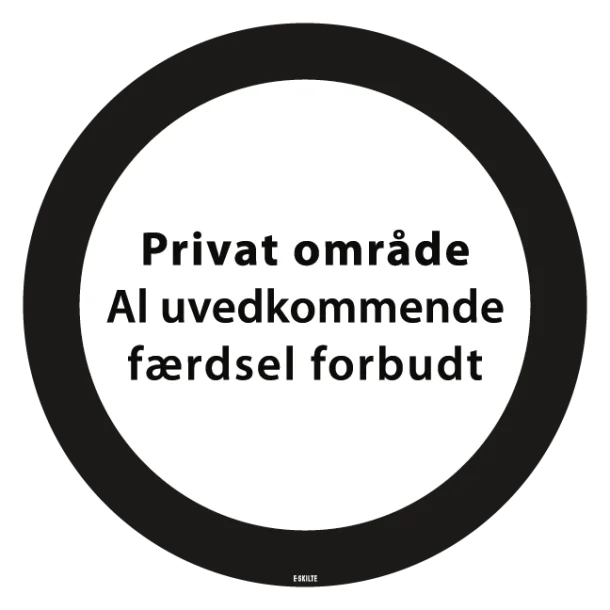 Med sit klare og forståelige budskab sikrer skiltet, at ingen er i tvivl om dine intentioner. Skiltet er designet med et tydeligt forbudstegn, hvoraf de forbipasserende kan se, at deres færdsel ikke er velkommen. Dermed reduceres risikoen for utilsigtet krænkelse af dit private område.