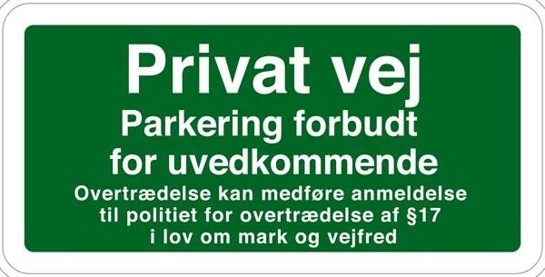 Invester i tydelig kommunikation og sikkerhed for din private vej i dag og sig farvel til uønskede parkeringsovertrædelser. Vores skilt er løsningen, som sikrer dig, at din private vej forbliver netop det: privat.