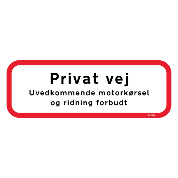 Gør det klart for enhver, at din vej er privat, og skab et sikkert og roligt miljø med vores “Privat Vej – Uvedkommende motorkørsel og ridning forbudt”-skilt. Det er det perfekte valg for den ansvarsbevidste ejendomsejer.