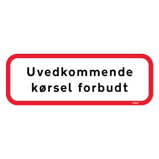 Skiltet kommunikerer direkte og ukompliceret med sin enkle besked: “Uvedkommende kørsel forbudt”. Denne besked efterlader ingen tvivl og er let forståelig for alle, hvilket gør skiltet til et effektivt middel mod uønsket trafik.