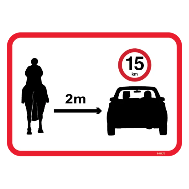 Forbedr sikkerheden på vejene for ryttere og bilister med vores “Hold afstand til ryttere skilt – Max 15 km”. Dette skilt er designet til at skabe opmærksomhed og øge forståelsen for ryttere i trafikken. Med et tydeligt budskab opfordrer skiltet bilister til at nedsætte hastigheden til maksimalt 15 km/t og bibeholde en forsvarlig afstand, når de passerer ryttere. Et vigtigt formål med skiltet er at skabe en sikker trafikzone, hvor både dyrenes og menneskers velbefindende prioriteres.