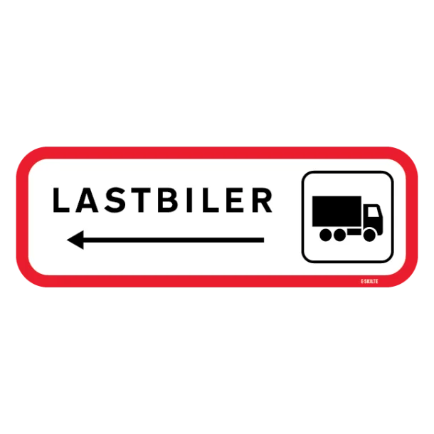 Lastbiler til venstre. Skilt