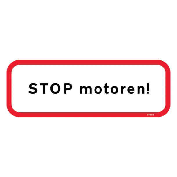Designet med en firkantet form og anvendelsen af det international kendte stopsignal, sikrer dette skilt at enhver besked om at slukke motoren bliver formidlet tydeligt og uden forvirring. Den høje kontrast mellem teksten og skiltets baggrund gør, at det kan ses og forstås selv på afstand.