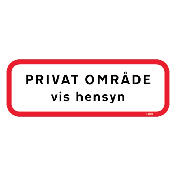 Med vores “Privat område – vis hensyn” skilt kan du nyde mere fred og privatliv. Det fungerer som en venlig, men bestemt påmindelse for gæster, forbipasserende og uvedkommende om, at de skal opføre sig hensynsfuldt og respektere private ejendomme. Invester i et klarere grænsesættende miljø i dag – vælg dette effektive skilt og formidl dét budskab, der er så vigtigt for dit private rum.