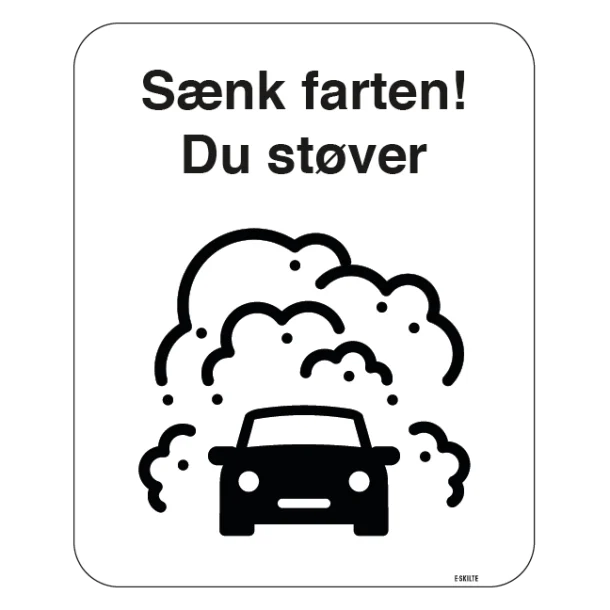 Giv tydelig besked med “Sænk farten, Du støver” skiltet