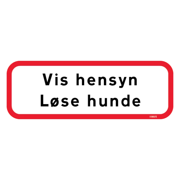 Med sit enkle og forståelige budskab kommunikerer skiltet direkte, at her kan der være løse hunde, og at det er vigtigt for folk at tage de nødvendige forholdsregler. Skiltet fungerer som en venlig påmindelse til alle, der færdes i området om at vise hensyn og omsorg.