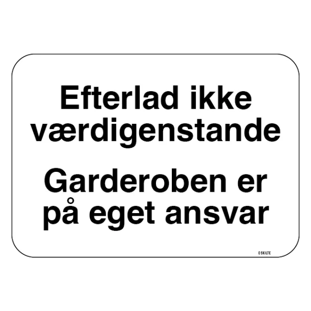 Efterlad ikke værdigenstande garderoben er på eget ansvar skilt