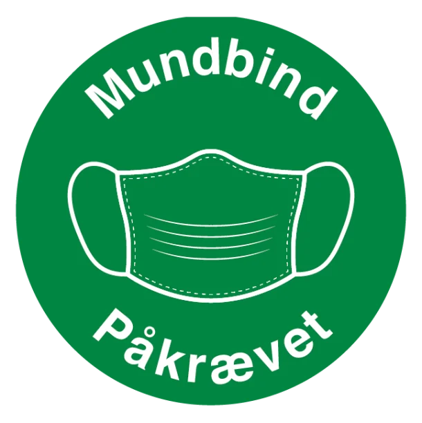 Et rundt og grønt skilt har en stærk signalværdi, der på tværs af sprogbarrierer kommunikerer, at her følger vi en bestemt praksis – i dette tilfælde brugen af mundbind. Gør det nemt for både medarbejdere og kunder at følge dine sikkerhedsforanstaltninger, og hold et højt niveau af hygiejne og sikkerhed med dette essentielle skilt.