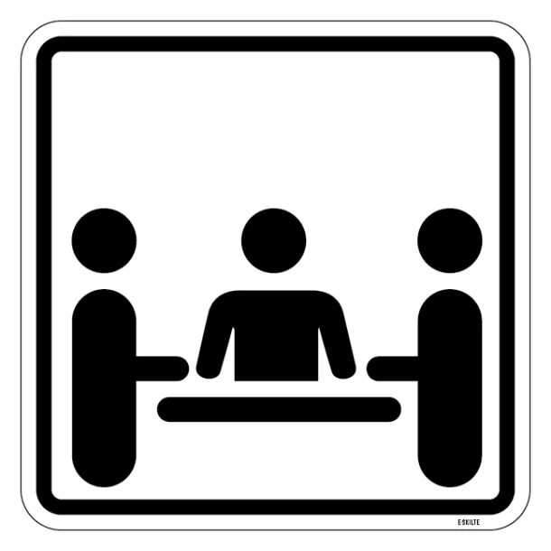 Med et piktogramskilt reducerer du forvirring og spildt tid for dem, der leder efter mødestedet. Piktogrammet er universelt forståeligt og behøver ingen yderligere forklaring, hvilket gør det ideelt til brug i bygninger med international trafik som hoteller, konferencecentre og lufthavne.