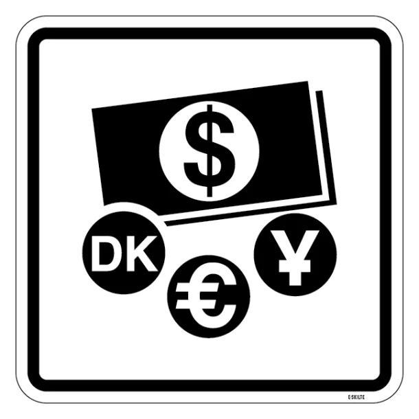 Placer synlighed overalt med “Valuta – piktogram skilt”