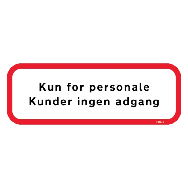 Med vores “Kun for personale” skilt kan du være sikker på, at dit budskab bliver set og respekteret. Det er ikke kun et signal til kunderne om, hvor de skal og ikke skal gå, men det hjælper også med at forbedre den interne logistik i din virksomhed ved klar kommunikation af adgangsområder. Invester i et klart og tydeligt signal om firmaets ordensregler og sikkerhedspolitik – køb et “Kun for personale – kunder ingen adgang” skilt i dag!