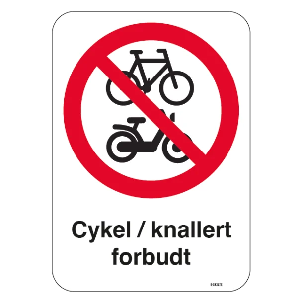 Invester i den klare kommunikation og det professionelle udseende, som vores “Cykel og knallert forbudt skilt” kan bidrage med, og gør dine områder mere trygge og indbydende for alle brugere.