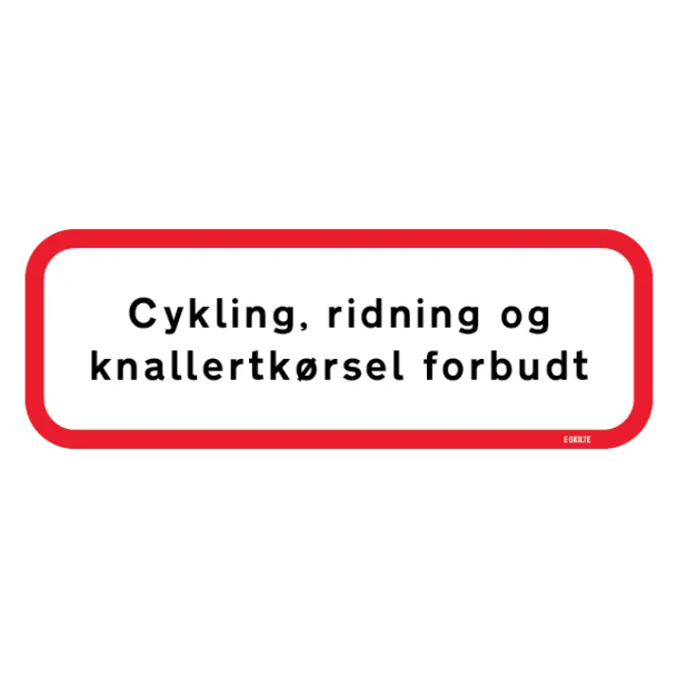 Du er kun ét klik væk fra at skabe et mere sikkert og behageligt miljø! Bestil dit “Cykling Ridning og knallertkørsel forbudt” skilt i dag, og vær med til at udforme velordnede og sikre rum til alles glæde og gavn.