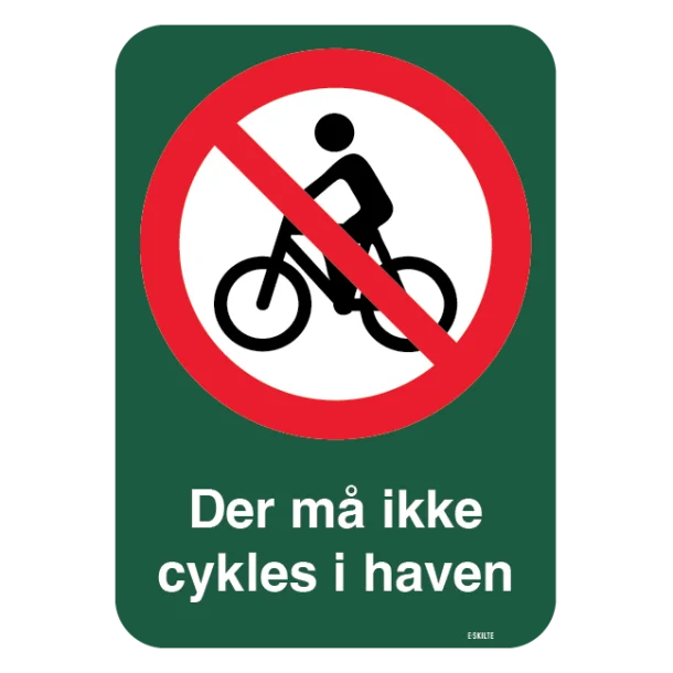Der må ikke cykles i haven skilt