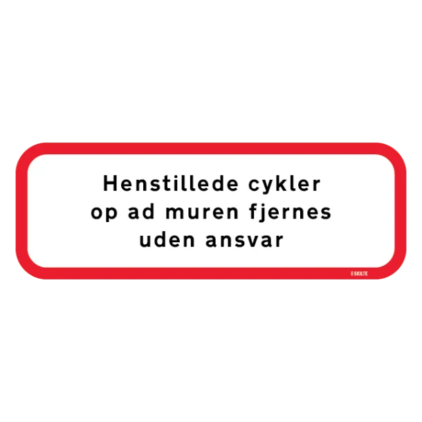 Henstillede cykler op ad muren fjernes uden ansvar Skilt