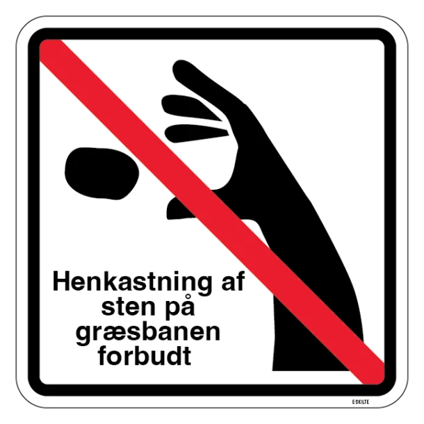 Henkastning af sten på græsbanen forbudt skilt