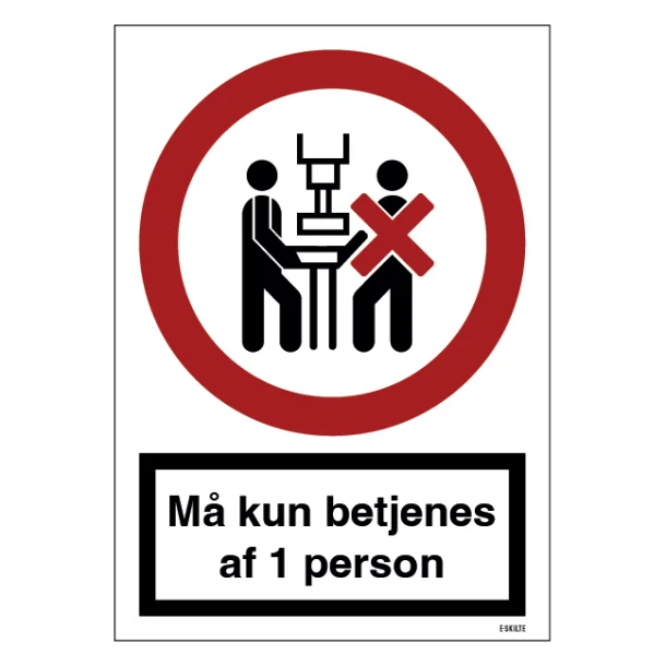 ‘Må Kun Betjenes af 1 Person’ Skilt