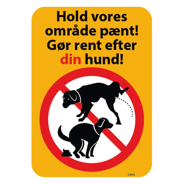 - Klar kommunikation: Skiltets budskab er direkte og letforståeligt, hvilket sikrer, at alle hundeejere forstår vigtigheden af at handle ansvarligt.