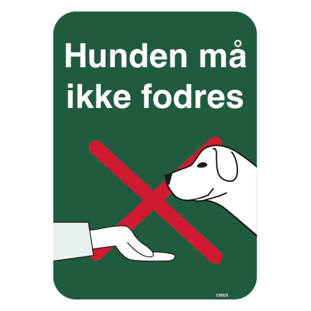 Med et “Hunden må ikke fodres” skilt sender du en tydelig besked til alle, der måtte komme i nærheden af din hund. Skiltet kommunikerer at: