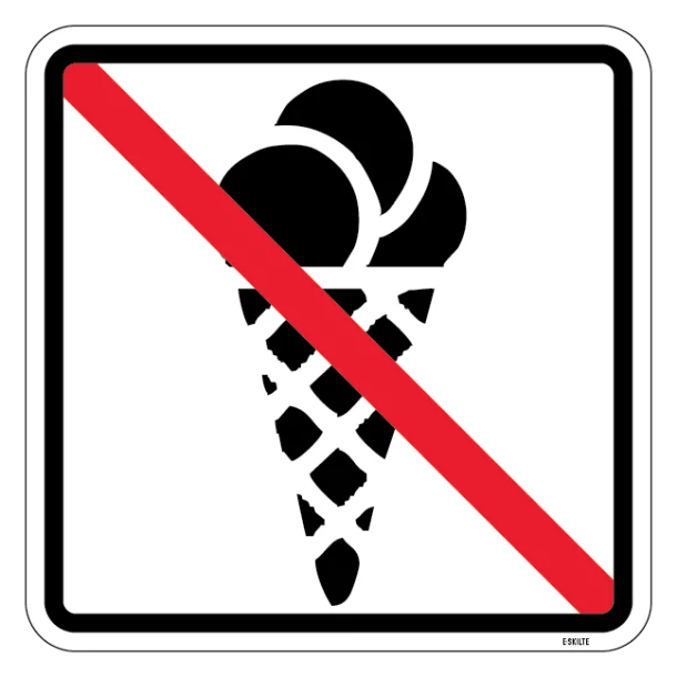 Skiltet formidler et tydeligt og umiskendeligt budskab ved hjælp af en enkel grafik. Piktogrammet er letforståeligt på tværs af sprogbarrierer og kulturelle forskelle, hvilket gør det effektivt til brug i et internationalt miljø. Når skiltet er placeret korrekt, er det med til at guide adfærden hos besøgende og ansatte, så de undgår brugen af is og dermed bidrager til et sikrere område for alle.