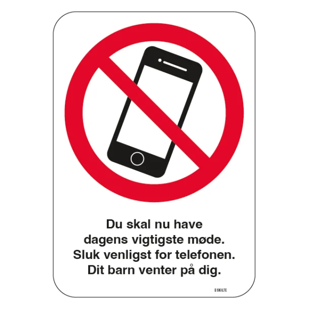 Du skal nu have dagens vigtigste møde, sluk venligst for telefonen dit barn venter på dig skilt