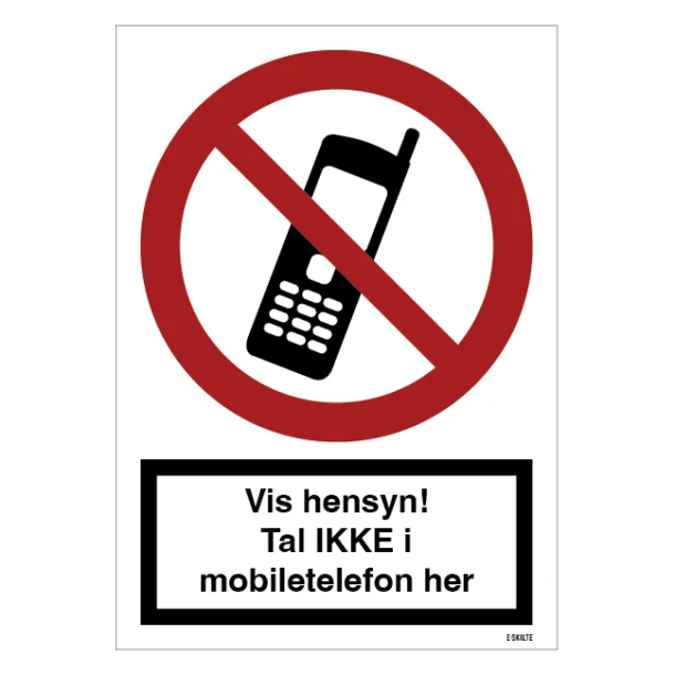 Vis hensyn! tal IKKE i mobiltelefon her skilt