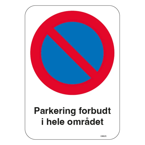 Med vores skilt får du en simpel og effektiv løsning, der kommunikerer klart og umisforståeligt. “Parkering forbudt Hele området” skiltet signalerer resolut overfor bilister, at de ikke skal parkere på dit område. Ved at opsætte dette skilt reduceres risikoen for kaotisk parkering, og du kan opretholde orden i området. Derved sikres der også fri passage for køretøjer, der har ærinde på området, såsom udrykningskøretøjer og vareleverancer.