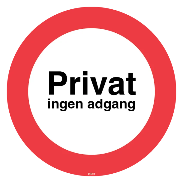 Et “Privat ingen adgang forbudt” skilt kan anvendes i en lang række kontekster. Det er ideelt til: