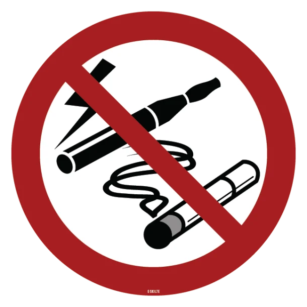 Vær med til at fremme et sundt miljø og gør det klart for alle, at e-cigaretter, vaping, og rygning ikke har nogen plads i dine omgivelser. Vores effektive rygeforbudsskilt er designet til at sikre en røgfri zone, hvor alle kan føle sig trygge og nyde godt af en forbedret luftkvalitet.