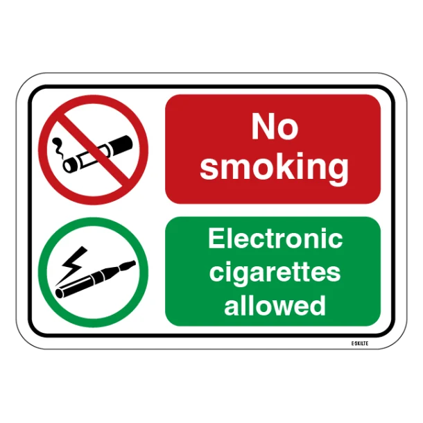 Forstærk dit engagement i et sundere miljø med vores No smoking E-Cigarette skilt Disse skilte er designet til at kommunikere klare budskaber om røgfrie områder, specielt hvor elektroniske cigaretter også er forbudt. Effektivt i både indendørs og udendørs områder, sikrer disse skilte overholdelse af sundhedsregulativer og fremmer ren luft.