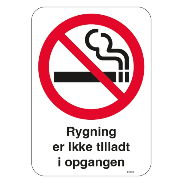 Vores skilt er designet med stor fokus på funktionalitet og anvendelighed. Det er nemt at montere og kan modstå daglig brug i travle opgangsmiljøer. Kvaliteten sikrer, at dit skilt forbliver synligt og læsbart over tid, og det klare budskab om at rygning ikke er tilladt, vil være tydeligt for alle beboere og gæster.