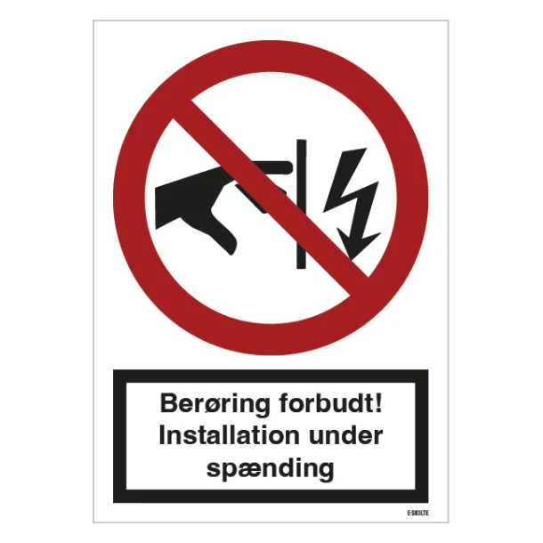 Vores “Berøring forbudt! Installation under spænding” skilt er designet til at sikre både sikkerheden på arbejdspladsen og oplyse besøgende med et klart og synligt budskab. Dette vitale sikkerhedsskilt er et must-have for enhver virksomhed eller organisation, der arbejder med elektriske installationer og udstyr. Det er det perfekte valg for at fremme en sikker arbejdskultur, hvor medarbejdere og gæster bliver gjort opmærksomme på de potentielle farer, der er forbundet med elektriske komponenter.