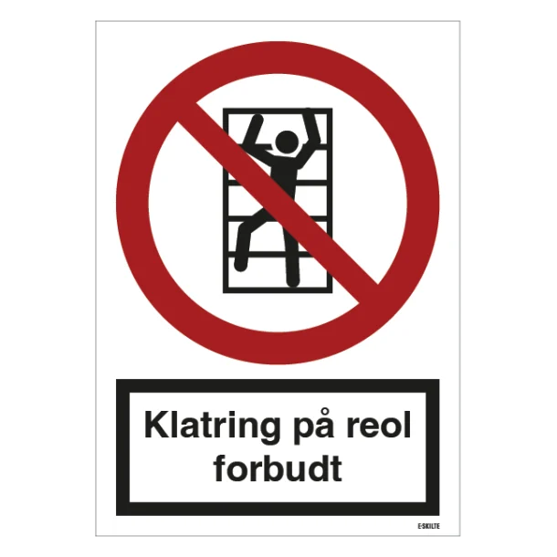 Klatring på reol forbudt skilt